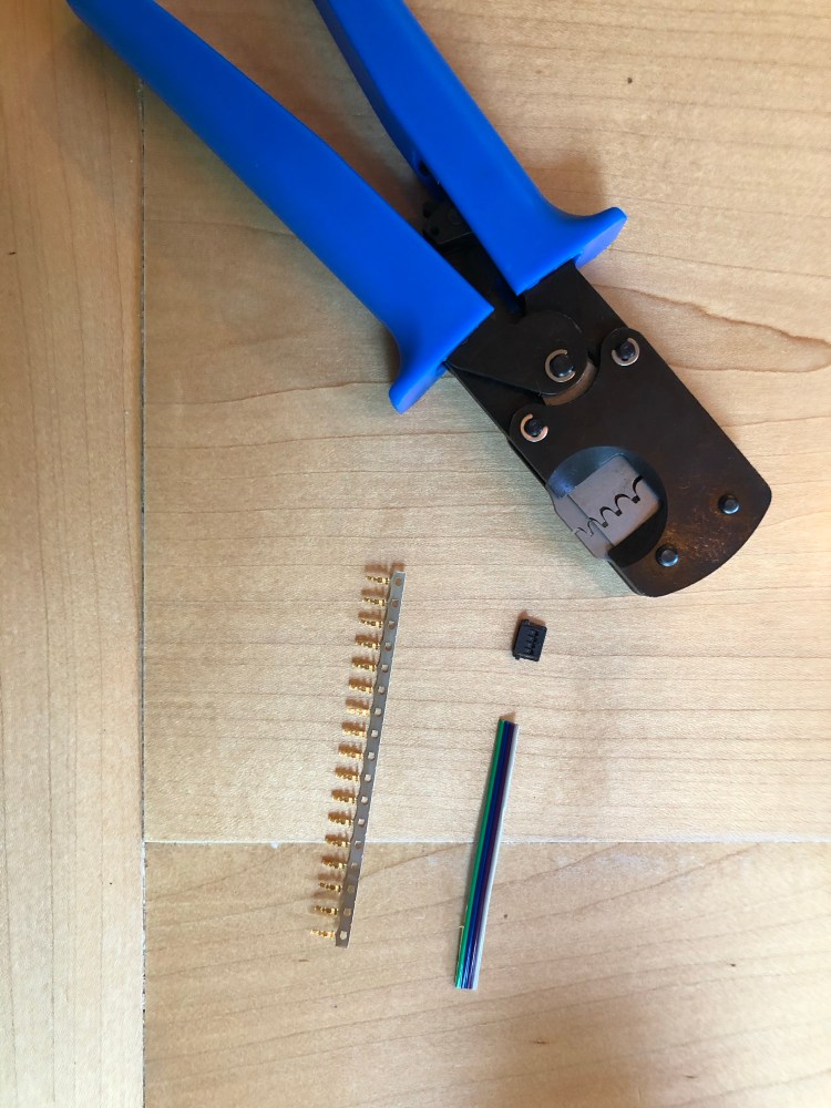 These modules use a very small connector for the signal and power cables. A Molex 5040510401 is the male side of the connection. There are also crimp connectors that are required to crimp to the wires. These also require a special tool for crimping. Molex asks about $450 for the tool. Amazon has third party ones for about $40. After going through all this work or finding the connectors, the crimp connectors, the crimpers, ribbon cable, and making these cables I found made pre-made assemblies. I wish i had seen these earlier. It would have saved an hour or two and been more reliable. It’s kind of like crimping CAT6 cables. You could do it but it won’t be near as good, probably wont be to spec, and will more than likely break. Oh well. Done now.
