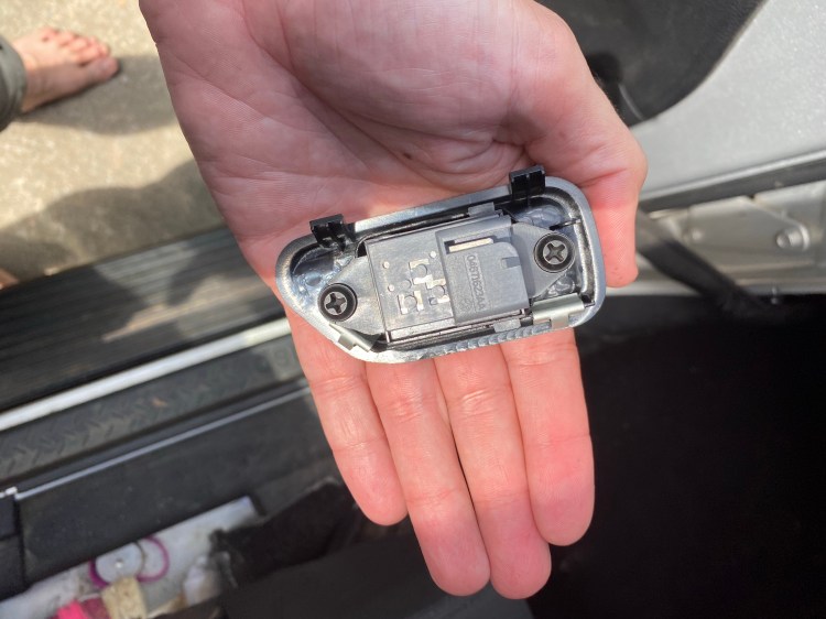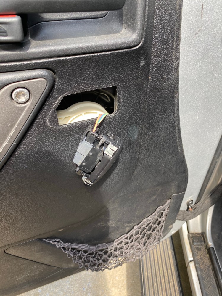 Another day another broken something. I got in the Jeep a couple of days ago and felt something hit my leg when I closed the door. I reached my hand down without looking thinking it was nothing and found the power lock buttons hanging out of the door.